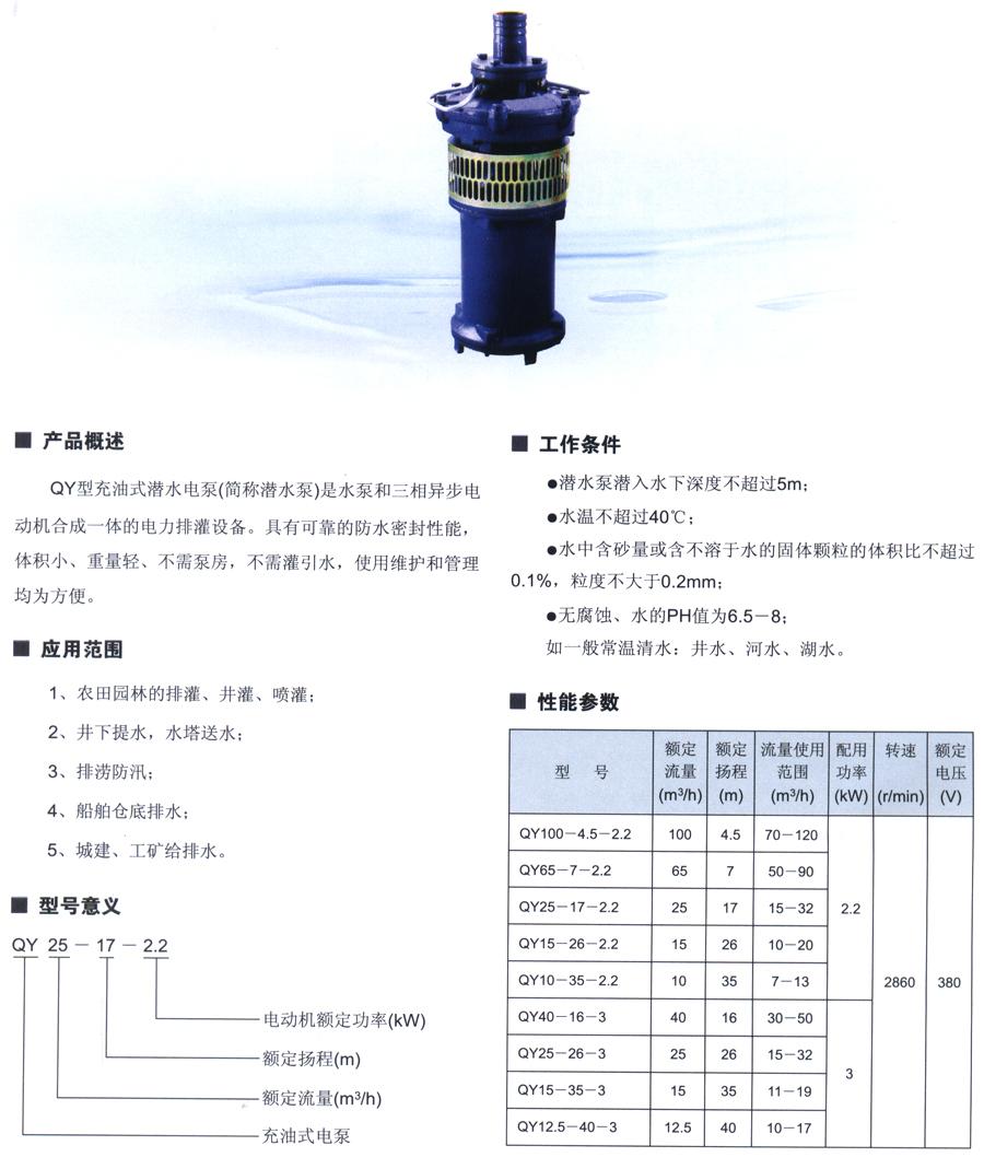 QY充油式潛水電泵
